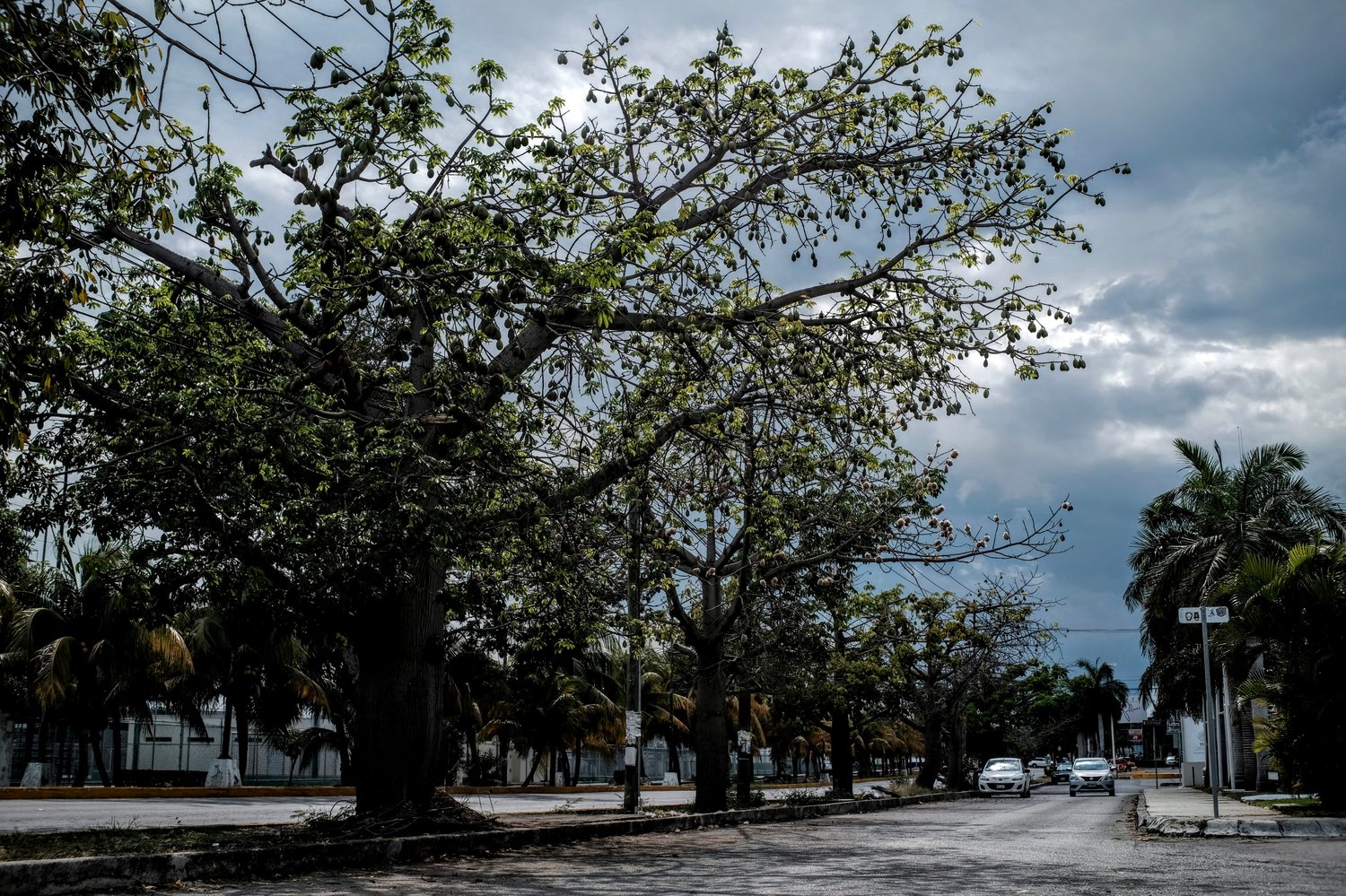 Un majestuoso árbol de mamey se alza en la Av. Xcaret, en el corazón de Cancún. Bajo un cielo nublado, sus ramas cargadas de frutos ofrecen un toque natural y vibrante a esta icónica calle del centro.