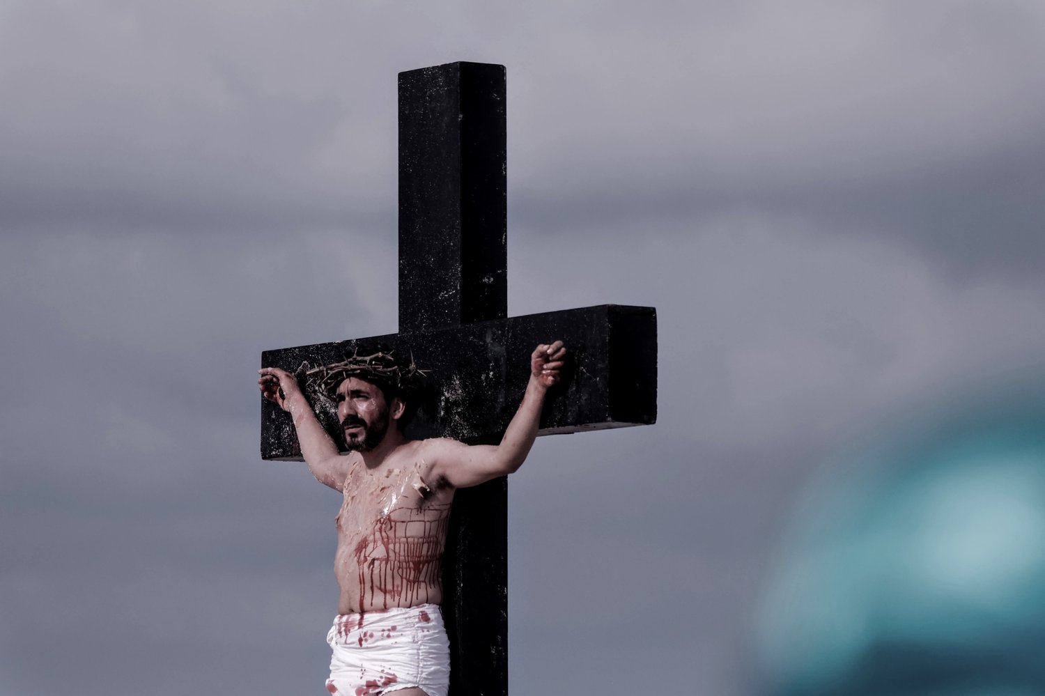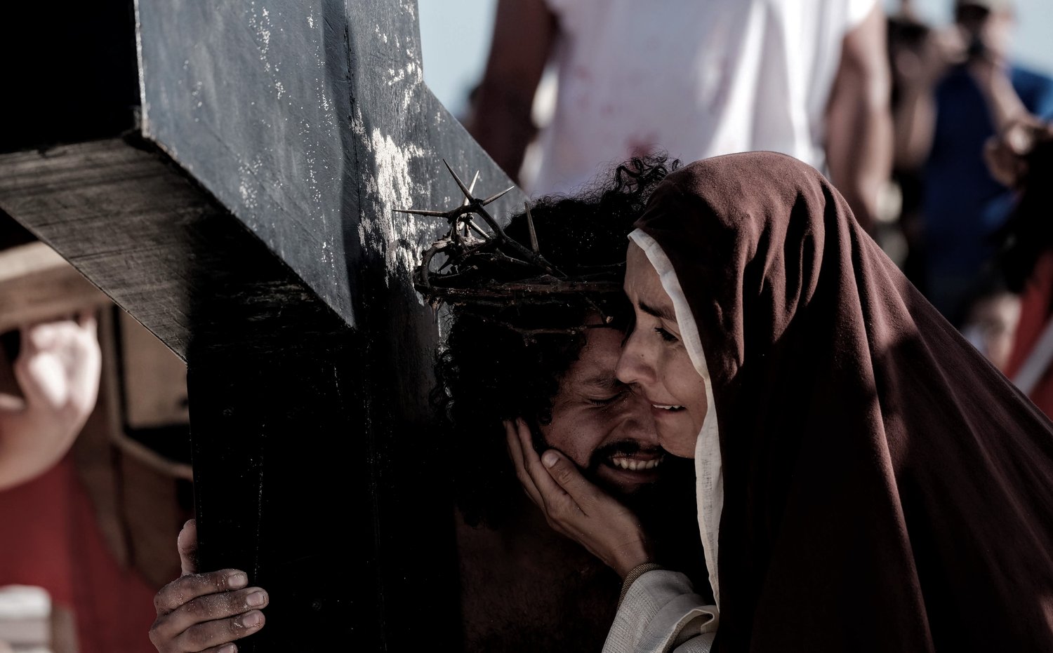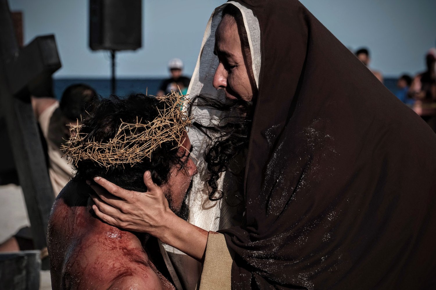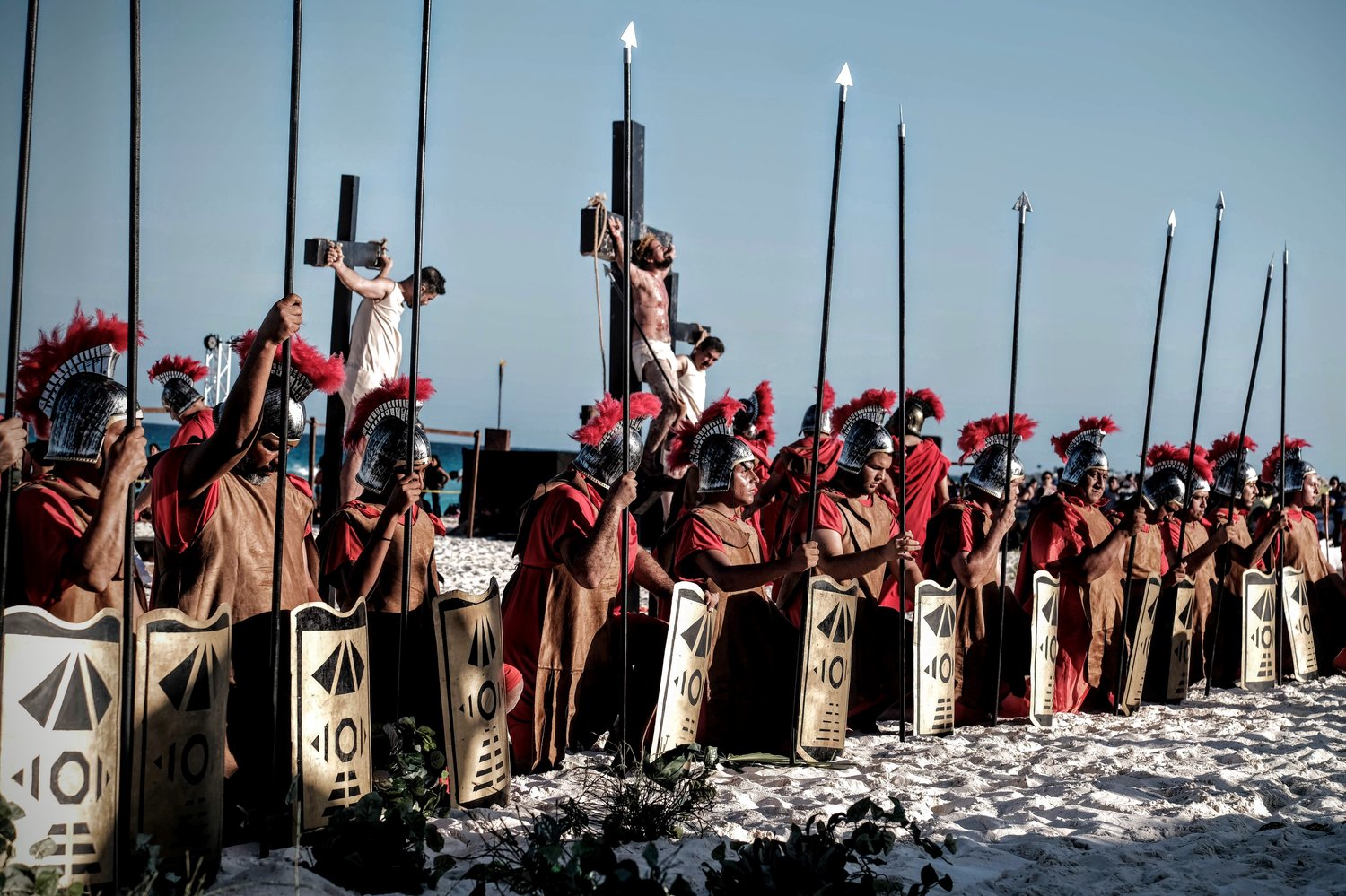 Esta tradicional puesta en escena del Viacrucis en Playa Delfines de Cancún es una realización del grupo Evangelización Creativa y Nicte Ha Sabido.