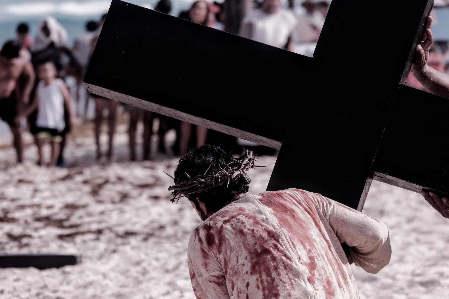El “Viacrucis Playero” es una de las tradiciones más icónicas del Caribe Mexicano. Esta representación de la pasión de Cristo tiene como escenario Playa Delfines, en la Zona Hotelera de Cancún.