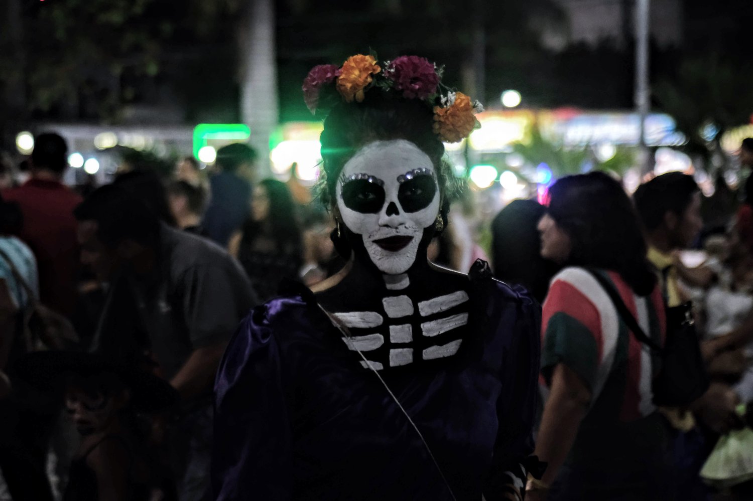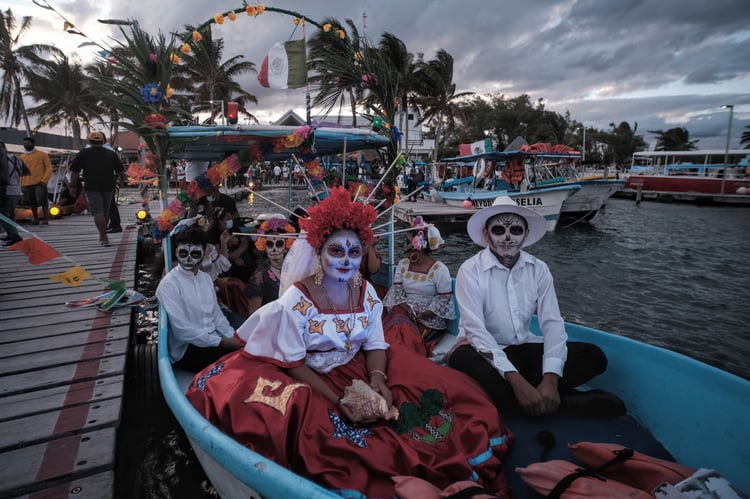 Cada año el 1 y 2 de Noviembre me pregunto qué es lo que nos atrae tanto de la muerte. Para los que no son mexicanos debe ser un poco extraño entender la costumbre del Día de Muertos. Para nosotros en cambio parece tan seductor acercarnos a ella. Tomarnos fotos con ella. Acariciarla, verla de cerca, divertirnos con ella,. disfrazarnos de ella, es parte de nuestras costumbres. Hacemos de la muerte una fiesta. Quizá inconscientemente es una forma de congraciarnos con ella para lo que viene en el futuro. Un futuro al que sólo Dios puede ponerle fecha. Esta tradición cobra vida todos los años en el Parque de las Palapas de Cancún y en los muelles de Puerto Juárez.